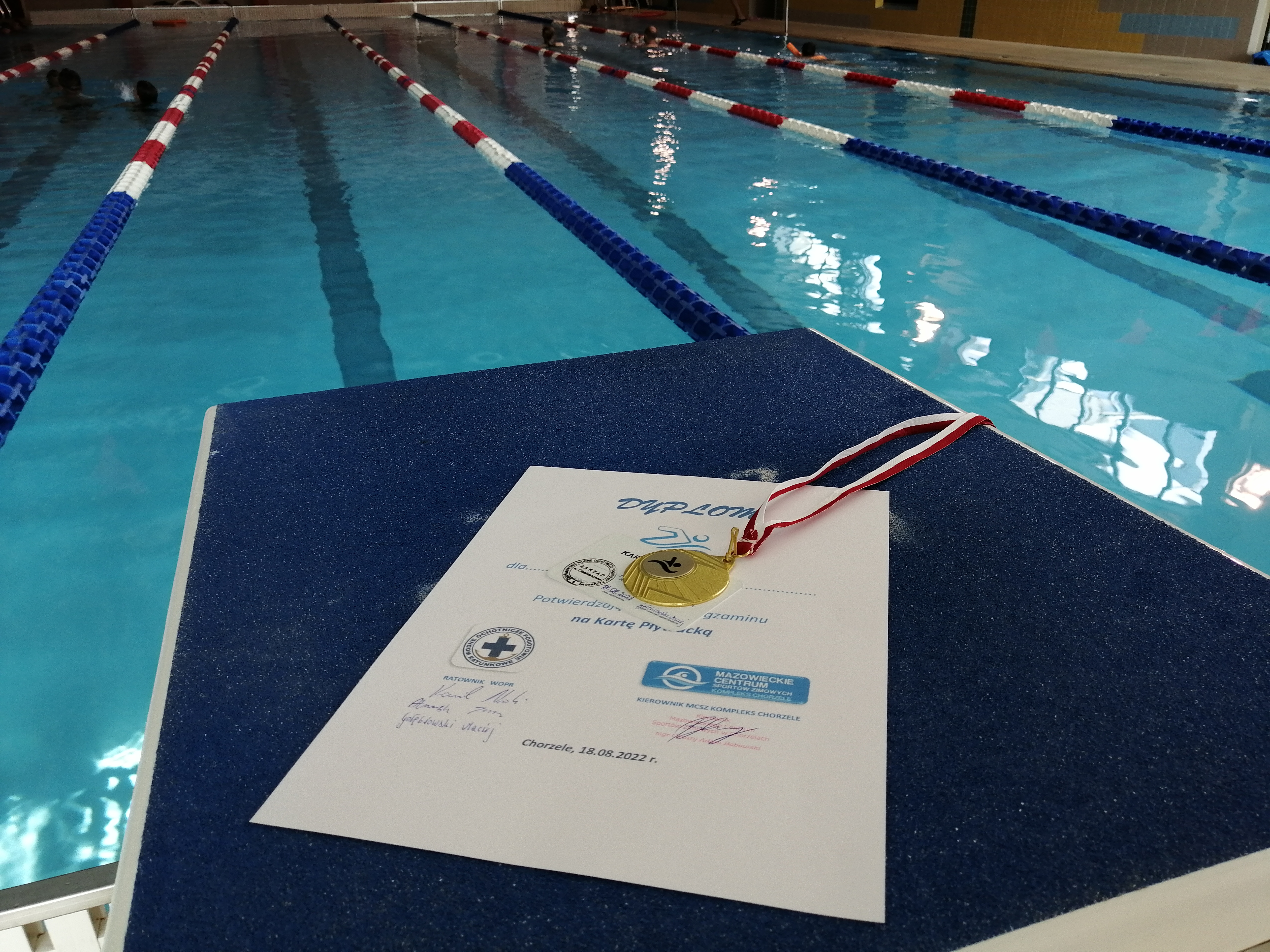 18.08.2022 r. w Mazowieckim Centrum Sportów Zimowych Kompleks Chorzele odbyła się trzecia edycja egzaminu na Kartę Pływacką, w którym wzięło udział 20 dzieci uczęszczających na zajęcia prowadzone na naszej pływalni