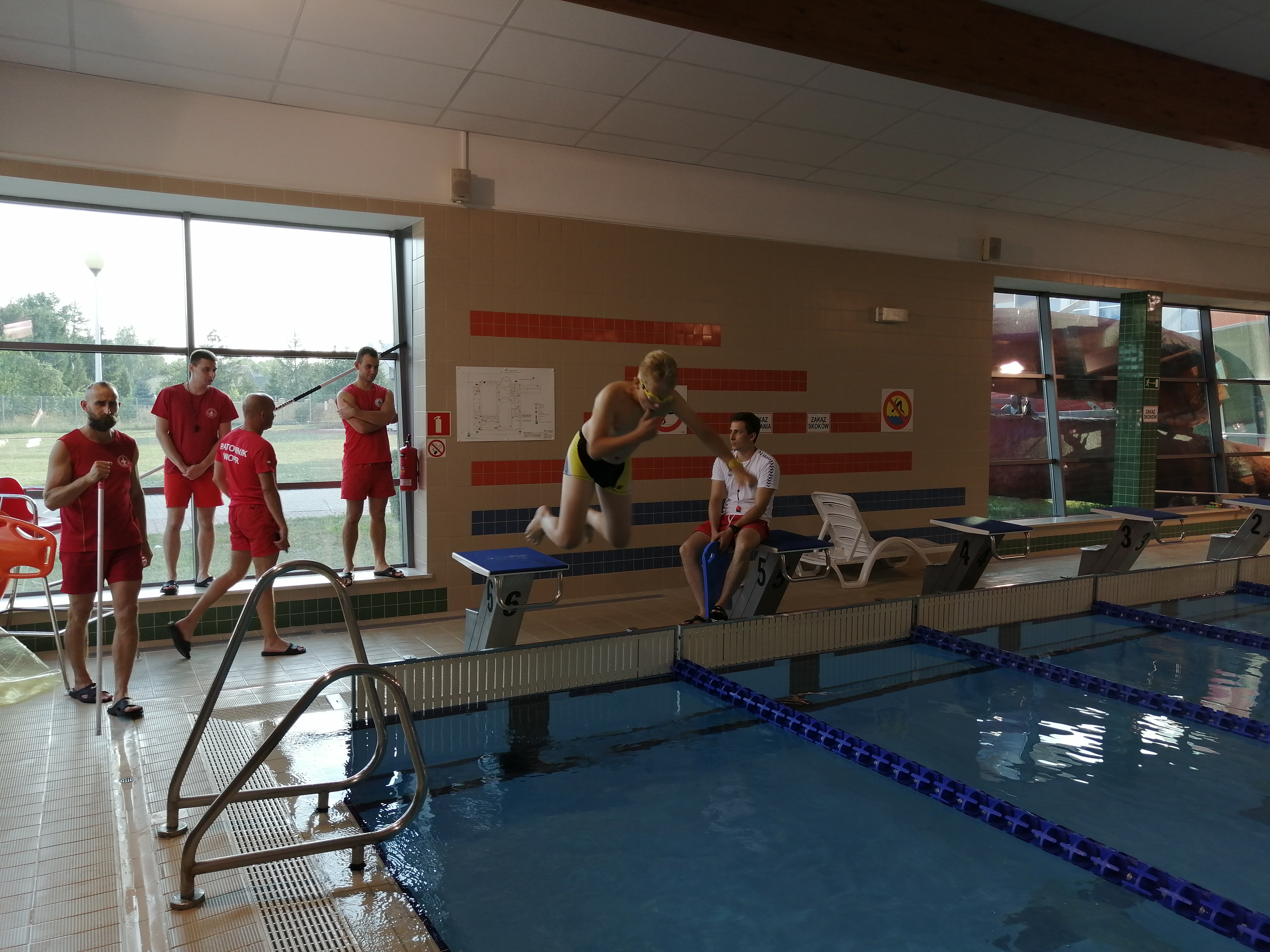 – wykonanie skoku do wody z wysokości 0,7 m (ze słupka).