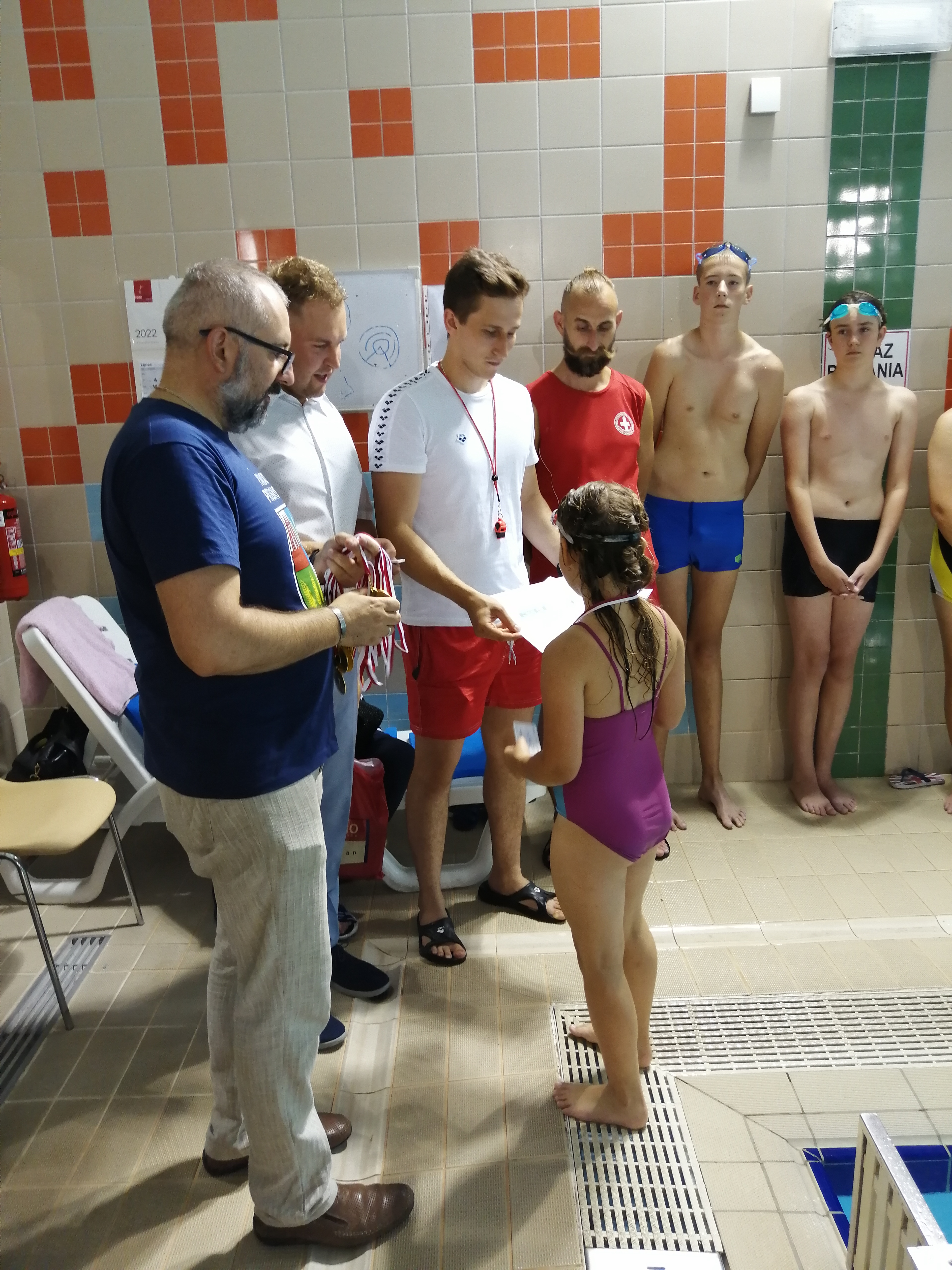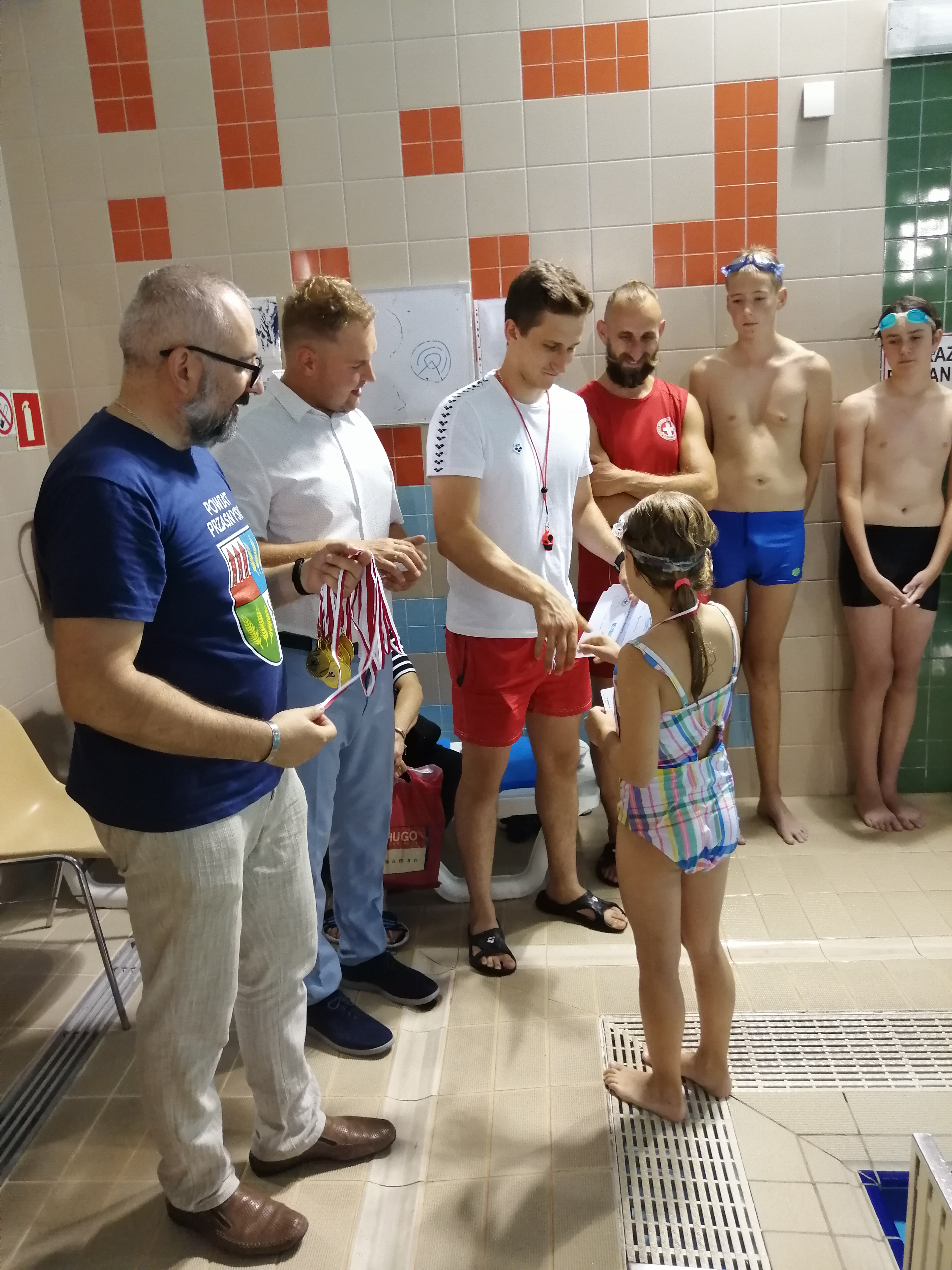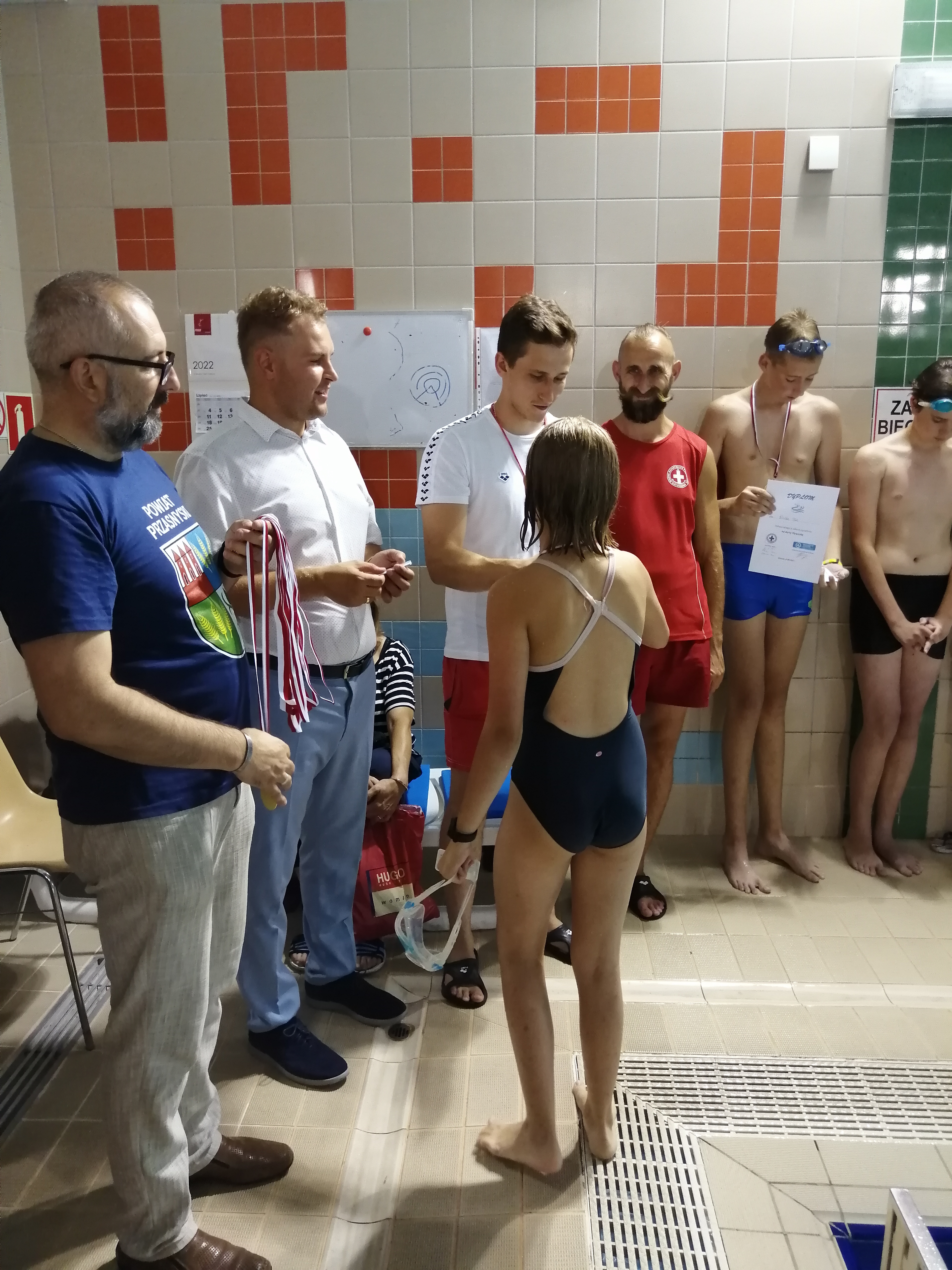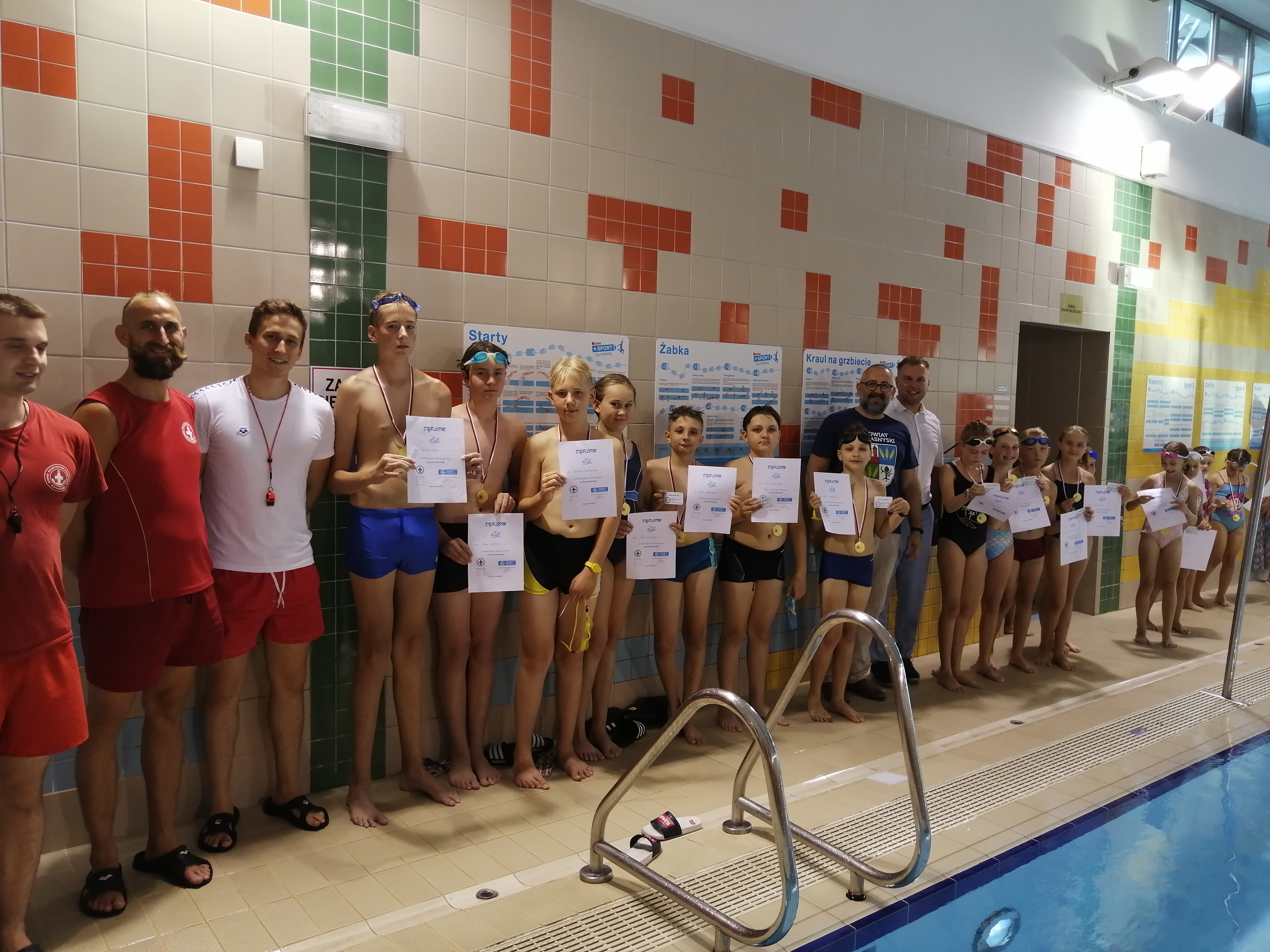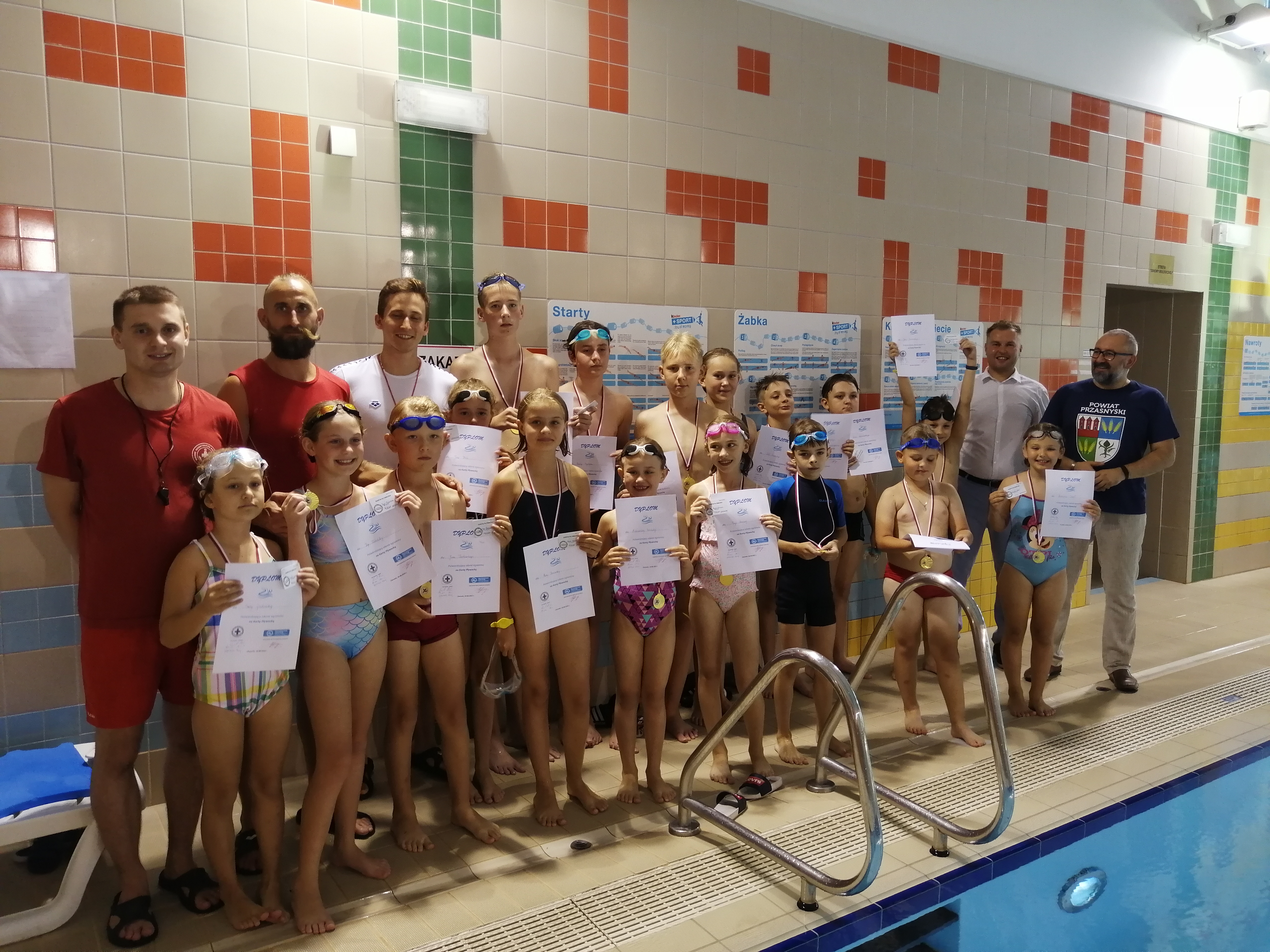Dzieciaki otrzymały gratulacje, dyplomy wraz z Kartami Pływackimi i pamiątkowe medale z rąk Starosty Powiatu Przasnyskiego Krzysztof Bieńkowski – publicznie oraz Kierownika MCSZ Kompleks Chorzele Cezary Adam Bobowski