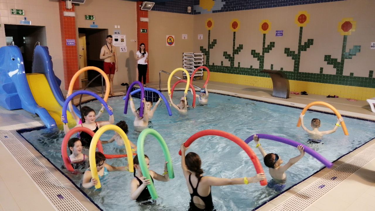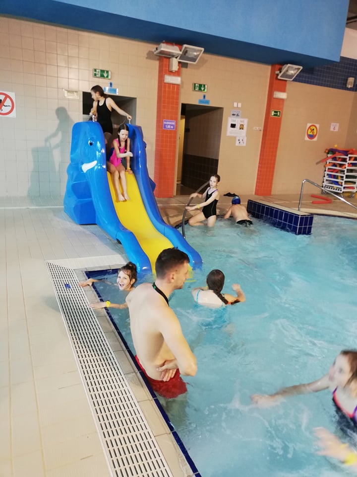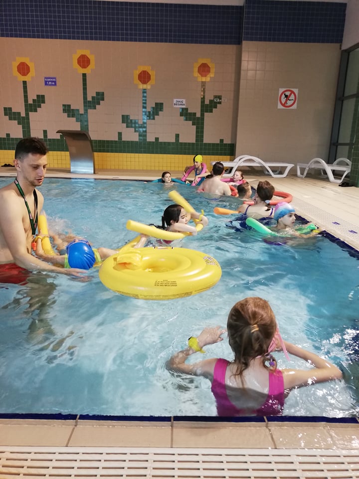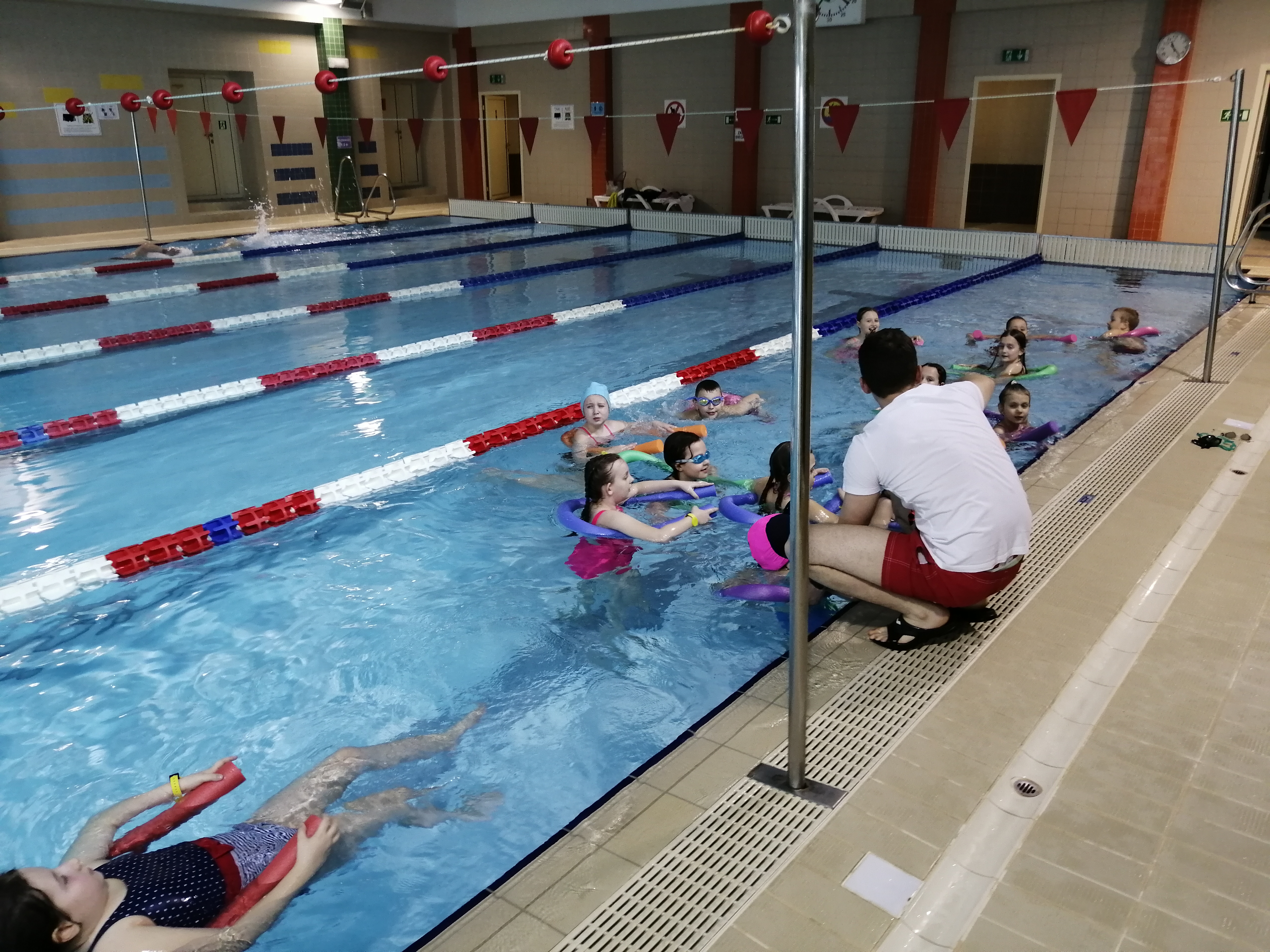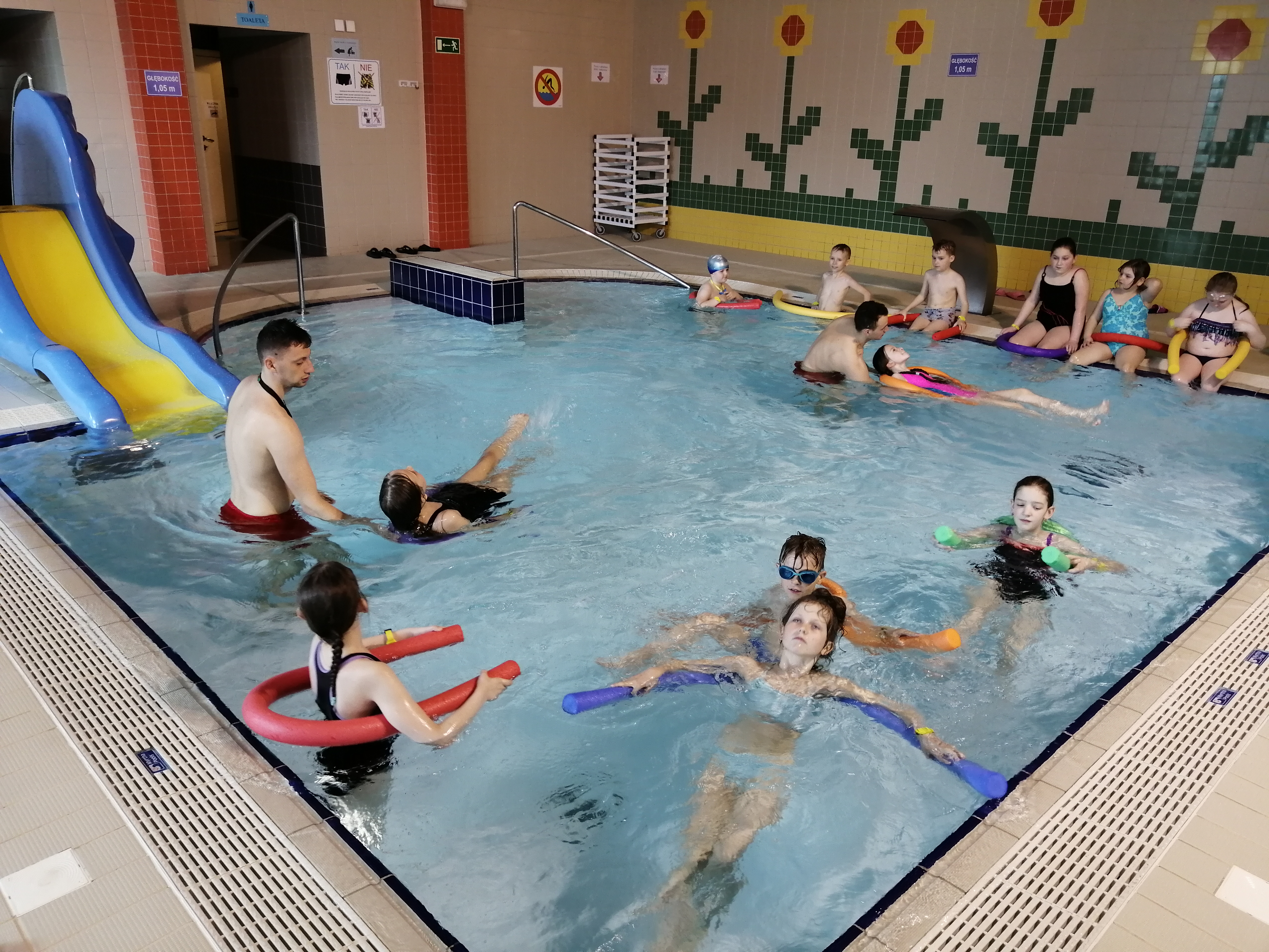 Następnie odbyły się zajęcia na basenach rekreacyjnym i sportowym, które prowadziło po dwóch instruktorów