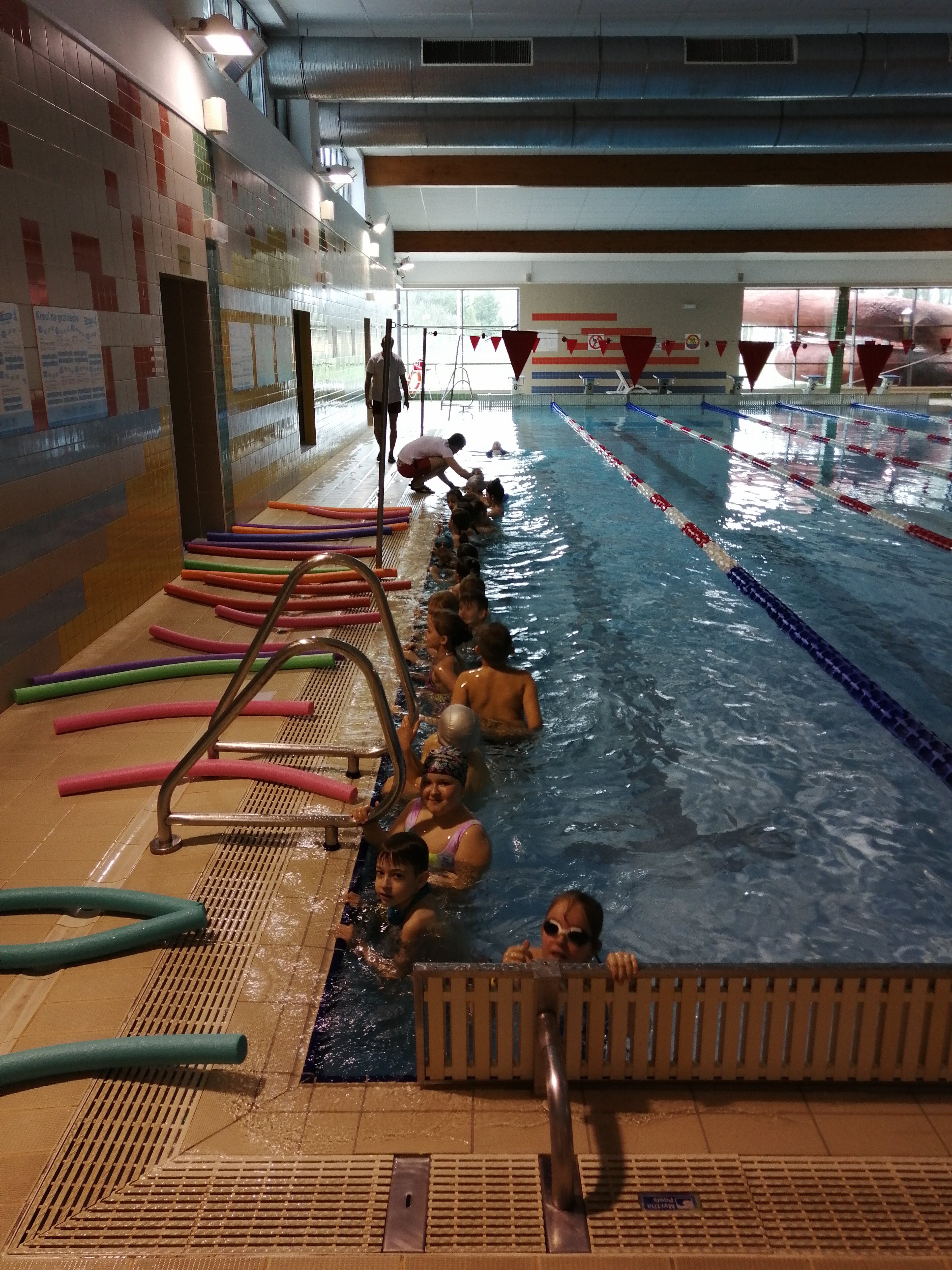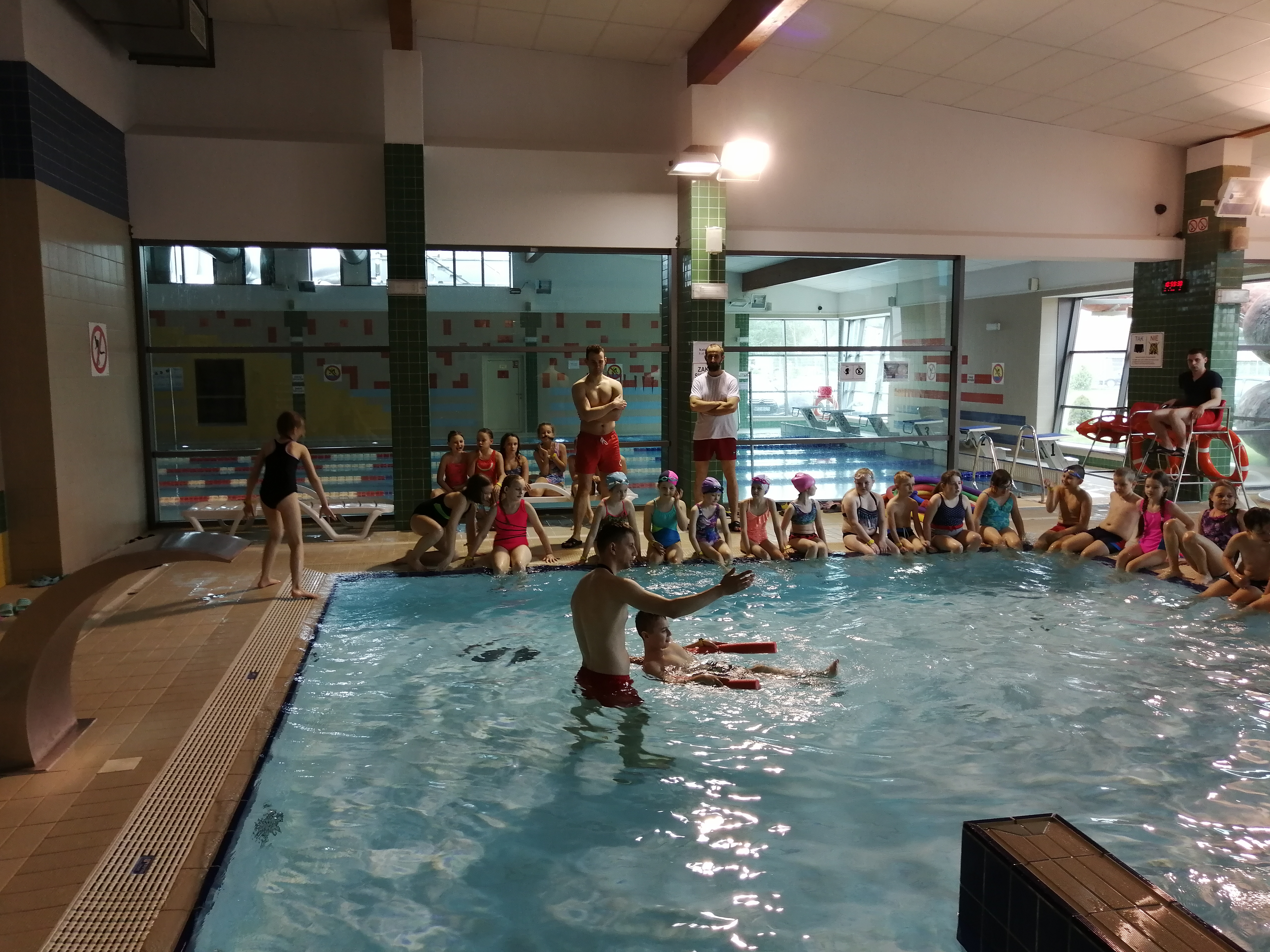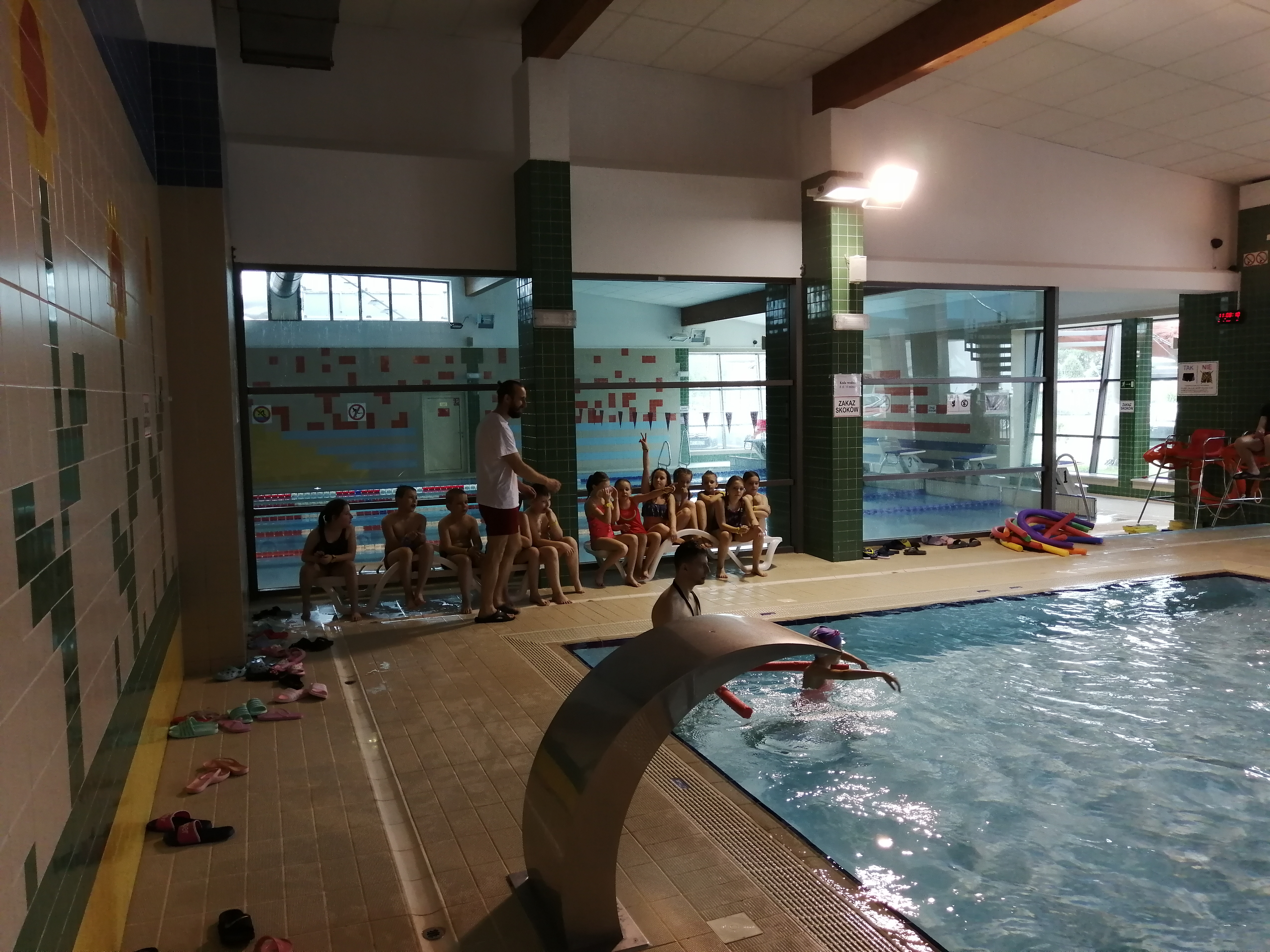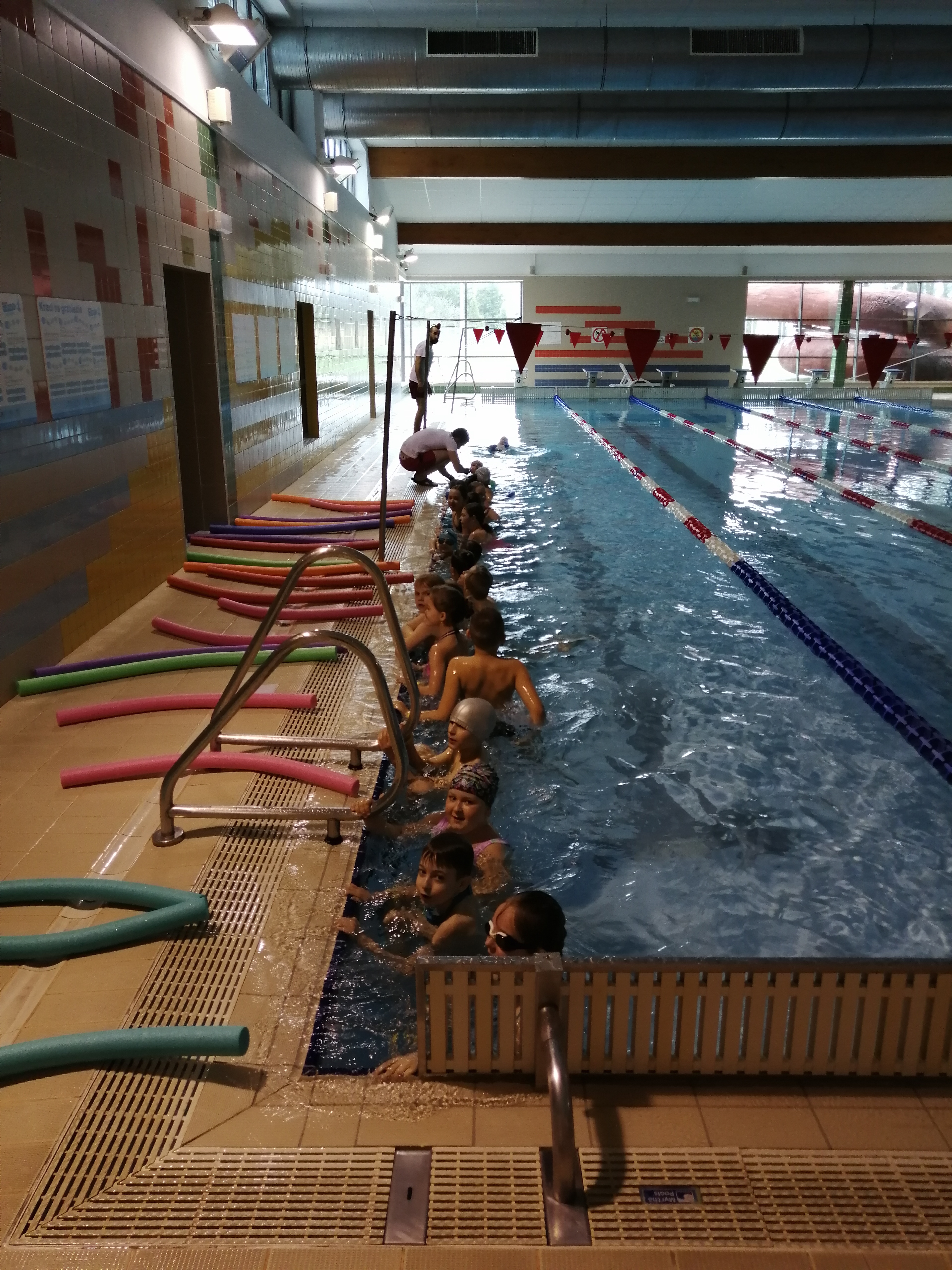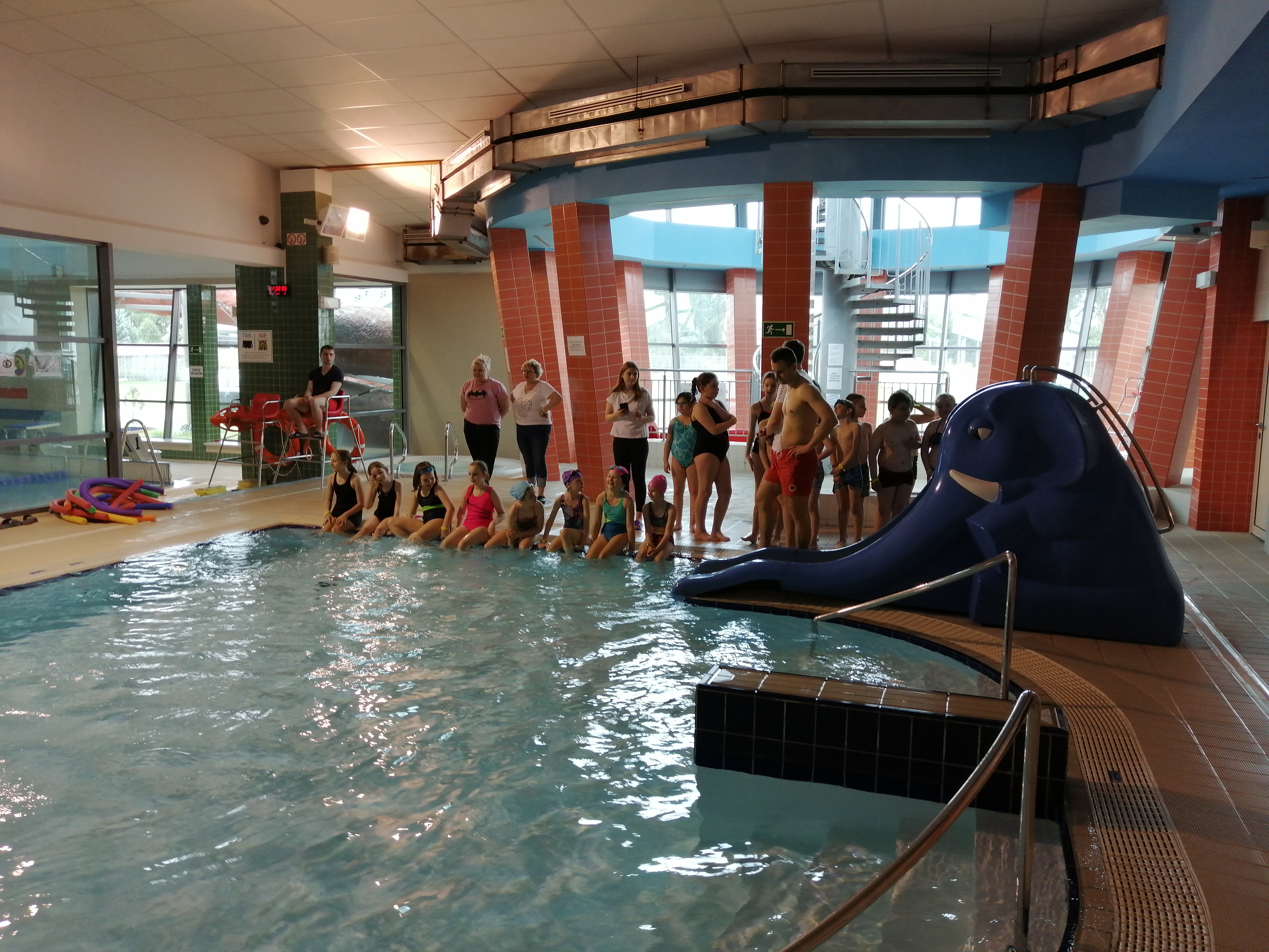 Dzieciaki poznały zasady obowiązujące na pływalni oraz przeszły egzamin wewnętrzny pozwalający je podzielić na grupy według poziomu umiejętności